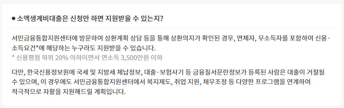 소액생계비대출 자격