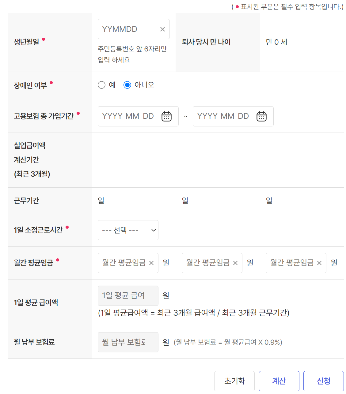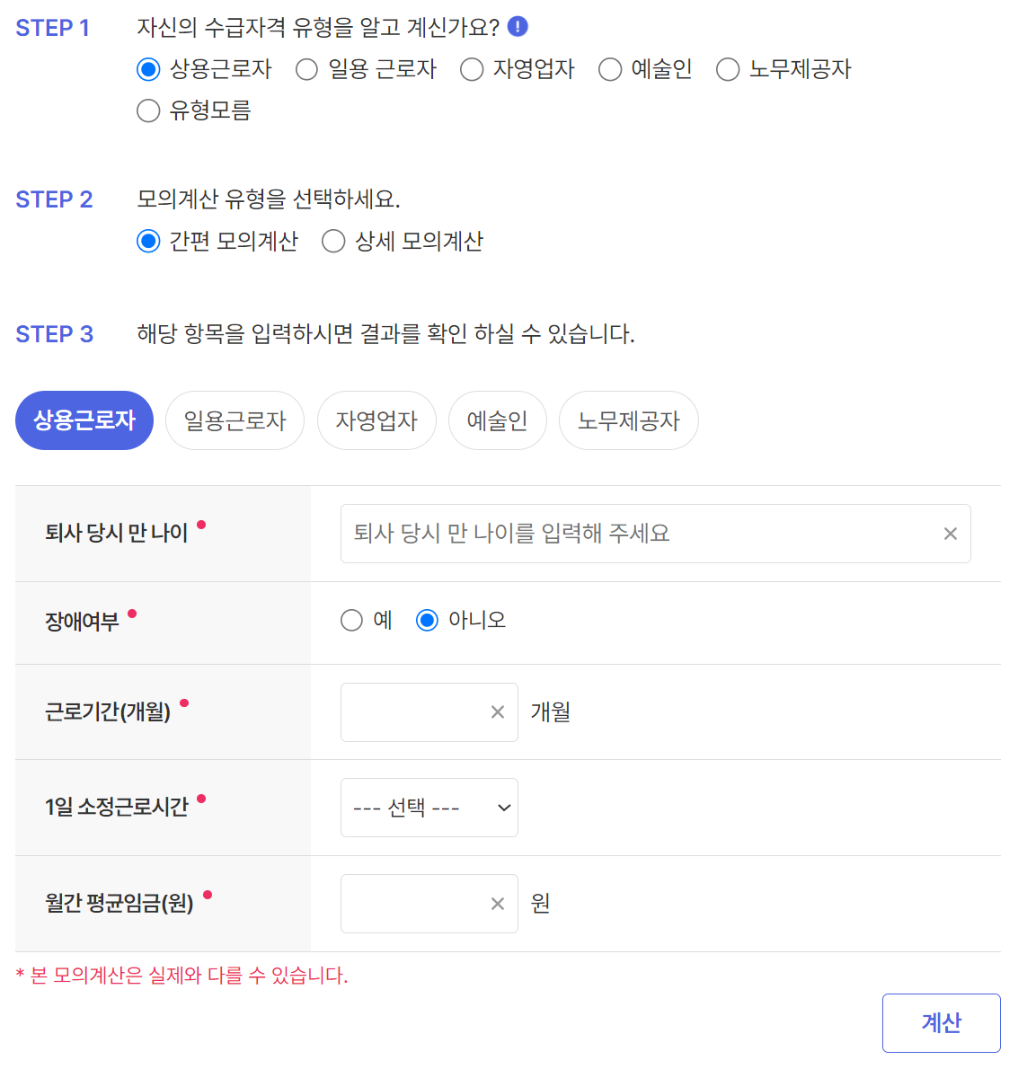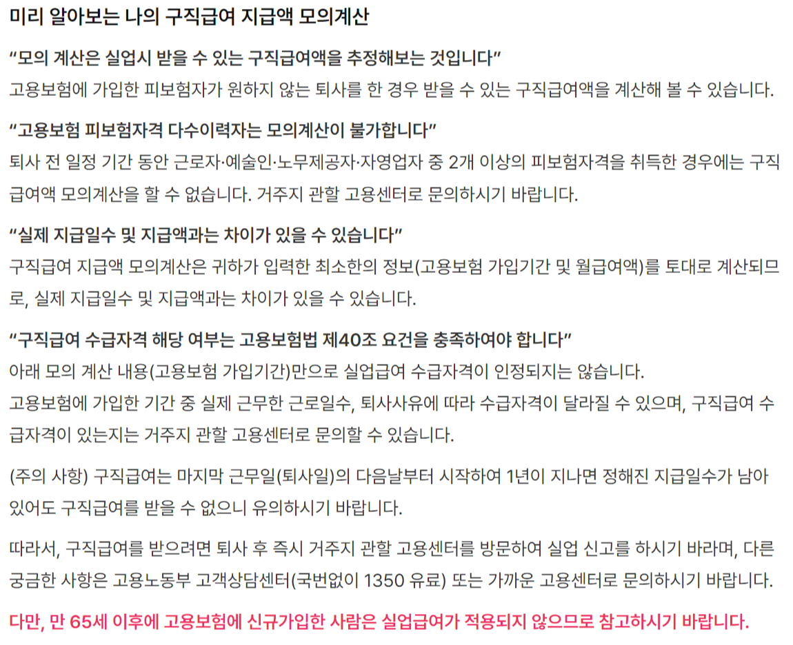 생년월일, 고용보험 가입기간, 최근 3개월의 급여를 입력해서 조금 더 정확한 정보를 얻을 수 있습니다.