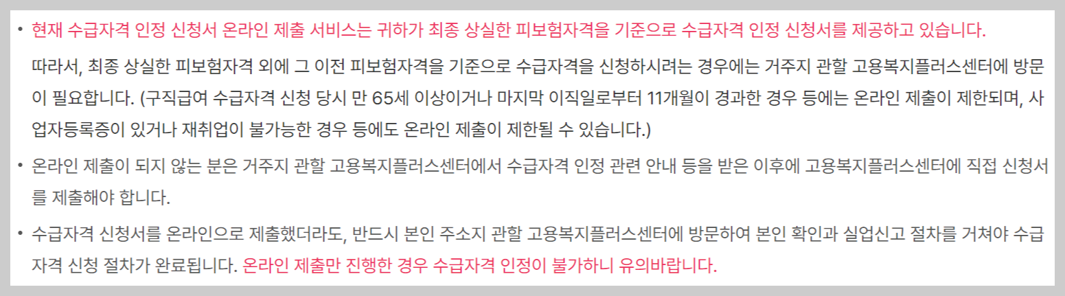 - 미달 경우: 이 조건을 충족하지 못할 경우 실업급여 수급 자격이 없습니다.