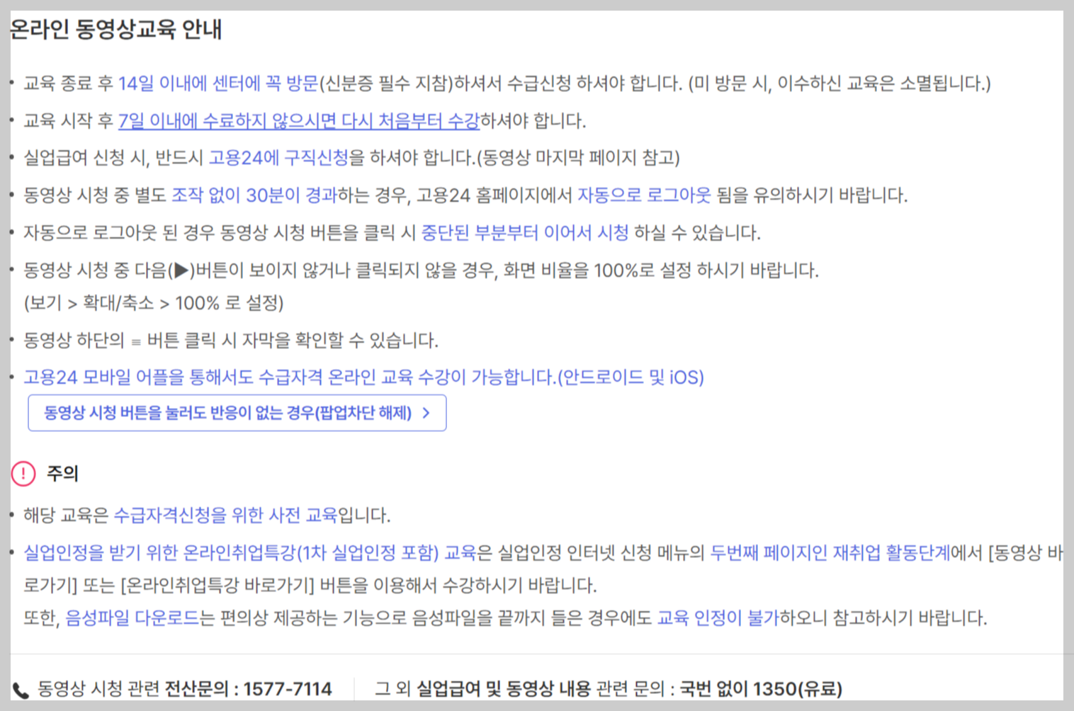 3. 수급자격 신청자 온라인교육 동영상을 시청합니다.
